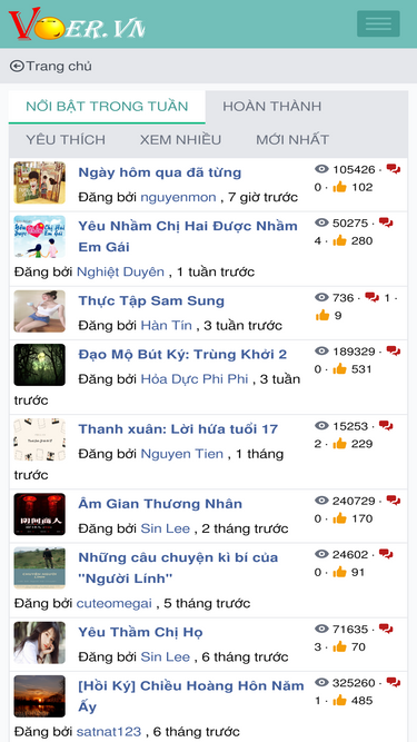 51%Vozer là web đọc truyện online miễn phí với với tổng hợp đầy đủ chuyện trên trời dưới đất, nhưng nổi bật nhất vẫn là là Truyện Voz. Nơi đây sản sinh ra những tác giả có những cuốn tự truyện có thể nói là huyền thoại một thời. Vozer có nhiều truyện mới nhất từ các tác giả với tất cả thể loại như Tâm linh, Tình yêu, Truyện ma,...