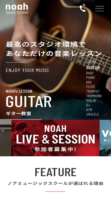 音楽教室ノアミュージックスクールオフィシャルサイト。当音楽教室は赤坂、銀座、都立大学、代々木、自由が丘、駒沢大学、中野、下北沢、田園調布、恵比寿、池尻大橋、目黒不動前、高田馬場、池袋、渋谷、吉祥寺、秋葉原にあり、楽器のレンタルも行っているので、音楽・楽器が初心者の方でも安心の音楽教室です!まずは体験レッスン、見学にて音楽を楽しんでみてください。