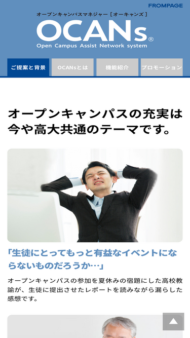 オープンキャンパスや進学相談会の効率的な運営と参加者の満足度向上を実現する大学向けwebシステム。それが【ocans(オーキャンズ)】です。オープンキャンパス運営の効率化と参加者へのサービス向上をサポートします。