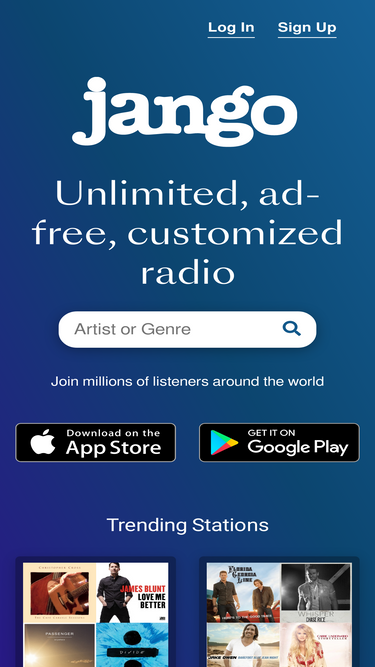 Listen to all the music you want on Jango Radio. Jango is personalized internet radio that helps you find new music based on what you already like. Unlimited listening, No ads.