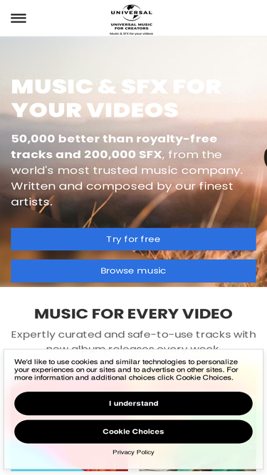 get unlimited access to better than royalty-free music from universal music for creators. a trusted source for your unlimited creativity. create your content, your way.