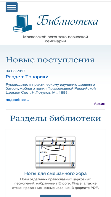 библиотека московской регентско-певческой семинарии