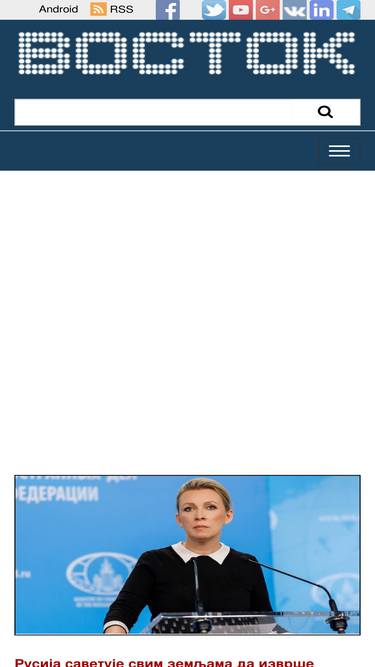 96%ВОСТОК вести су први веб портал на српском језику са актуелним вестима из Русије. Све о Русији. Руска политика, друштво, ...