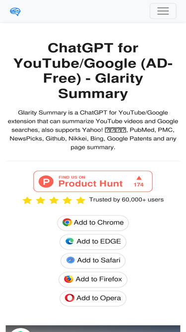77%Glarity is a free ChatGPT extension that uses ChatGPT4o AI to summarize YouTube videos and translate web pages. It also supports GPT-4o, Claude 3.5, and Gemini for AI chat, video summaries, AI search, ChatPDF, and AI image generation. }