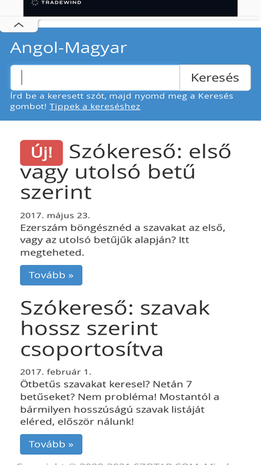 letisztult, átlátható webes szótár.