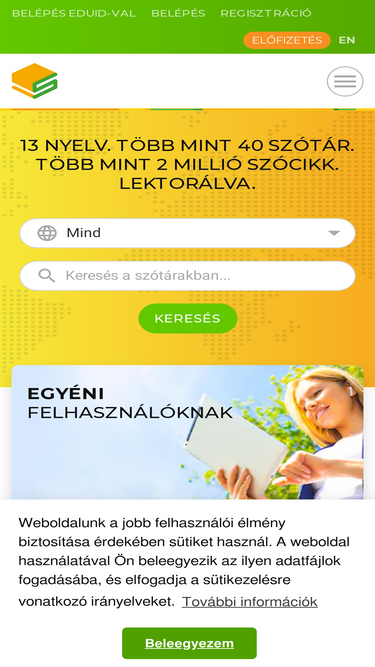 78%15 nyelv, több mint 40 szótár, több mint 2 millió lektorált szócikk a hiteles nyelvtudásért. Weben, applikációban, MS Office bővítményben.