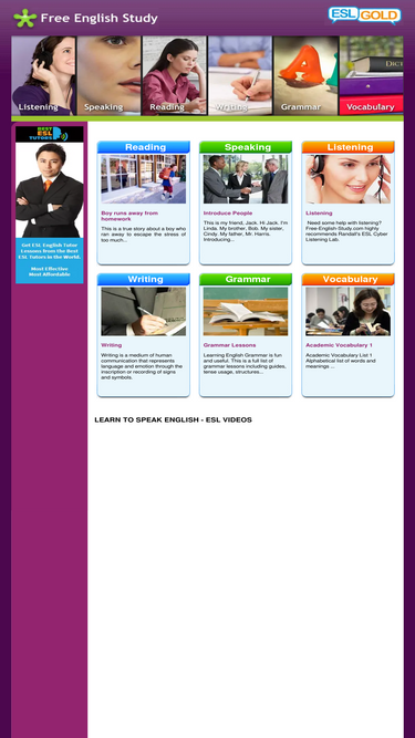 95%free english study and teaching resources for students and teachers of esl, english as a second language. learn speaking, grammar, reading, and vocabulary - free english study site for esl learners