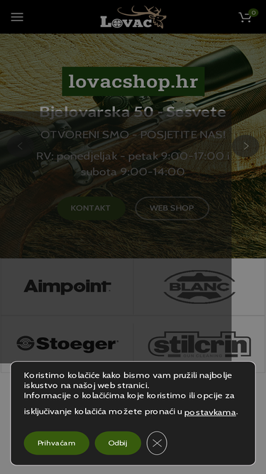 97%Trgovina lovačkom, ribolovnom i sportskom opremom. U našoj trgovini možete pronaći i kompletnu ribolovnu opremu, štapove, role, futrole, najlone, prihranu te ostali sitan pribor. Također se u našoj ponudi nalazi i velik izbor ribolovne odjeće i obuće kao i specijalnih lampi i opreme za kampiranje.