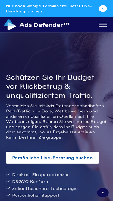 Werden Sie ein Ads Defender und schützen Sie mithilfe unserer Echtzeit-Lösung Ihr Werbebudget vor schadhaftem Traffic und Klickbetrug.