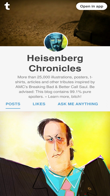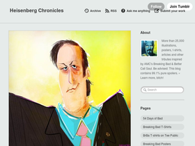 67%More than 25,000 illustrations, posters, t-shirts, articles and other tributes inspired by AMC's Breaking Bad & Better Call Saul. Be advised: This blog contains 99.1% pure spoilers. » Learn more, bitch!
