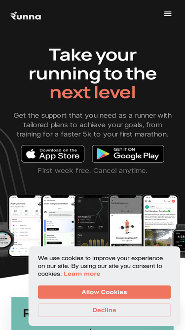 Los siguientes términos y condiciones se aplican al sitio web y a los servicios ofrecidos por Runna. Esto incluye las versiones para móvil y tableta, así como cualquier otra versión de Runna accesible a través de escritorio, móvil, tableta, redes sociales u otros dispositivos.