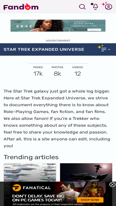 star trek expanded universe is a complete guide to star trek fan fiction, rpgs, and fan films that anyone can edit.