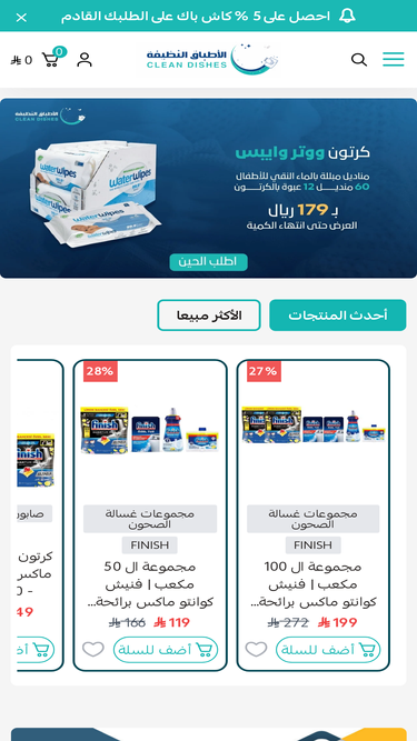 متجر متخصص بتوفير كل احتياجاتك من مواد النظافة, منظفات الحمام و المطبخ و صابون غسالة الصحون ومواد العناية الشخصية و المناديل و صابون ملابس و كافة احتياجات منزلك تجدها لدى مؤسسة الاطباق النظيفة