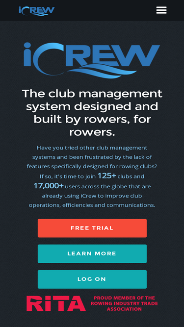 icrew is a website designed to help rowing clubs manage boat and oar inventory, team rosters, program registration, fee payments, document tracking, member data, attendance records, practice session plans, and regatta lineups. icrew can also manage equipment damage reporting and incident report. boat location tracking is key safety feature of icrew.