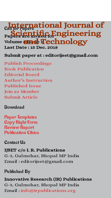 100%the international scientific research organization for science, engineering and technology (isroset) is a non-profit organization; the isroset is dedicated to improvement in academic sectors of science (chemistry, bio-chemistry, zoology, botany, biotechnology, pharmaceutical science, bioscience, bioinformatics, biometrics, biostatistics, microbiology, environmental management, medical science, forensic science, home science, library science, material science military science, physical science, physical education science, educational science, fisheries, seed technology, agriculture, forestry science, mathematics, physics, statistics and geology/earth science), computer science, engineering and information technology, commerce, management, economics sociology and social science.
