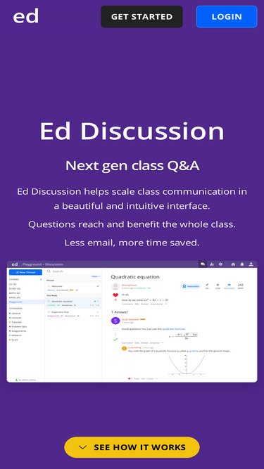 ed discussion helps scale course communication in a beautiful and intuitive interface. questions reach and benefit all students in the class. less email, more time saved.