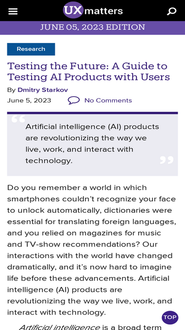 100%Share your ideas with the UX communityDo you have an idea for an article that can inspire and inform practitioners in the field?We are looking for articles that give a new perspective on a UX topic, share best practices on a method, or tell an interesting story about a unique project that you worked on. Your