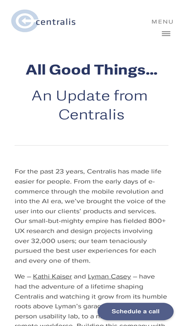 Centralis is a leading UX research and strategy agency. Our services include user research, persona development, ux strategy, usability testing, expert ux audits, competitive ux benchmarking, user interviews, customer journey mapping, and information architecture research and design.