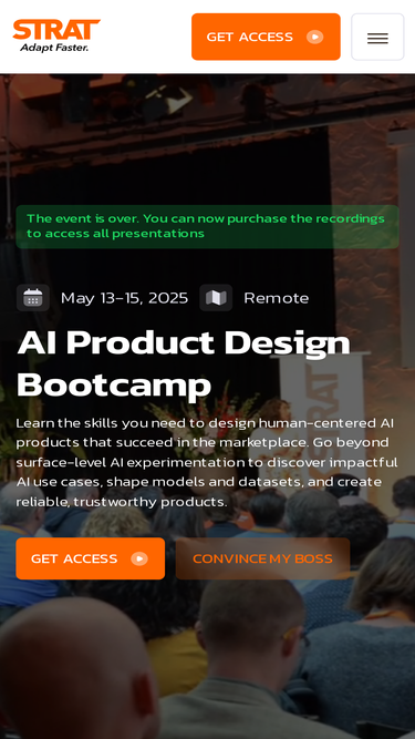Since 2013, STRAT has equipped product leaders on three continents with the design strategy playbooks to out‑perform the competition. 2025’s edition focuses on human‑centered, sustainable AI — Two immersive days on the future of product design. Join global UX / Product leaders as we move from classic web/app workflows to guide the design of sustainable, AI‑powered products.