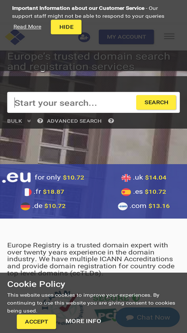 europe registry is your european wide domain name registrar providing complete coverage of european cctld domain names including .eu .de .nl .be .es .uk .it .se .ch .pl .at and more member states.