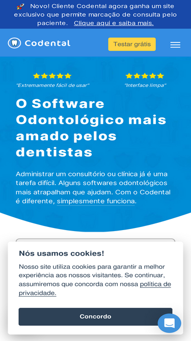 Software Odontológico com Agenda Online, WhatsApp Automático, Financeiro, Anamnese Inteligente e muito mais. Tudo com o melhor suporte do mercado. Junte-se a mais de 10000 dentistas.