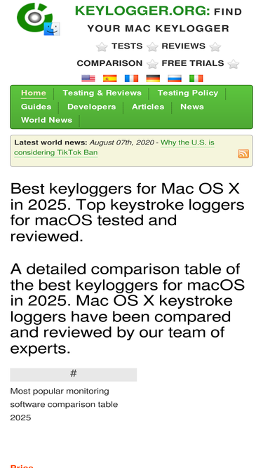 a detailed comparison table of the best keyloggers for macos for 2018. mac os x keystroke loggers have been compared and reviewed by our team of experts, so now you can easily choose, download or purchase the best os x monitoring software for employee surveillance, parental control, etc.