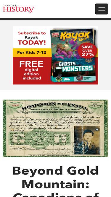 84%canada’s history society is a national charitable organization with a programming budget of $2.7 million annually. founded in 1994 to popularize canadian history, the society’s work includes: canada’s history magazine, kayak: canada’s history magazine for kids, canadashistory.ca, and the governor general’s history awards.