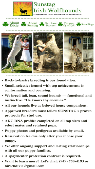 The home of the Irish Wolfhound of Ireland. The country of origin Mother Breed Club for the Irish Wolfhound and the holder of the breed standard.