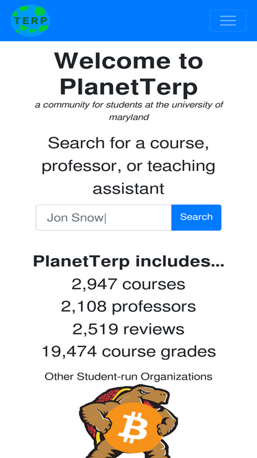 A community for students at the University of Maryland — College Park containing grade data, professor reviews, tools, and more.