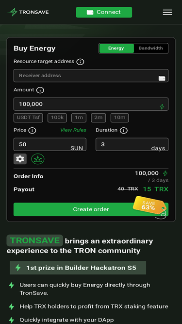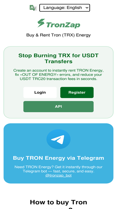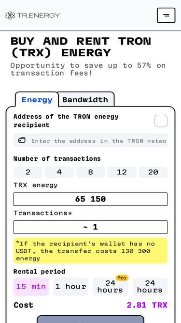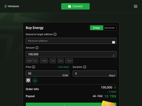 Buy Tron Energy & Bandwidth directly through rental platform. Help TRX holders to profit from TRX staking feature. Quickly integrate with your DApp.