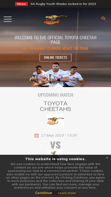 Official website of the Toyota Free State Cheetahs rugby team offering news, teams, profiles, fixtures and results.