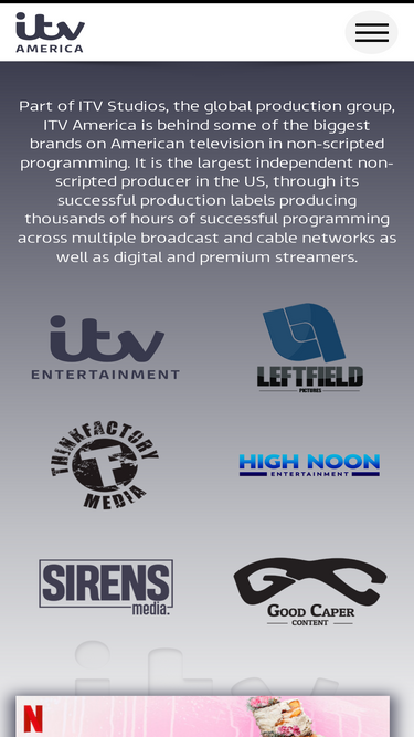 100%ITV AMERICA TERMS OF USE Effective Date: September 21, 2022 The following Terms of Use informs you of the terms, conditions, disclaimers, notices, policies, and agreements (collectively, “Terms”) which set forth the basic rules that govern your access to and use of websites, apps, and any other pages, features, or content owned or operated by ITV
