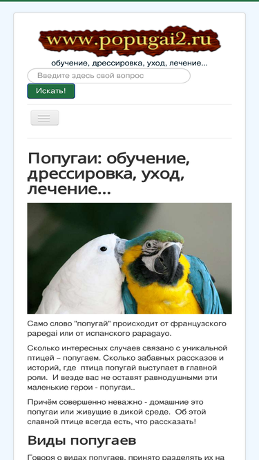 все о том, как выбрать попугая и где лучше купить, как ухаживать за ним, чем кормить, как и чем лечить. новости и развлечения с участием попугаев. описание видов попугаев.