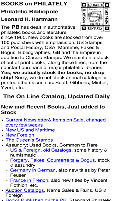 new philatelic literature stocked from over 100 publishers, used from many more: classic us, postal history, csa, gb and the empire, europe, maritime, forgery, india, forwarding agents