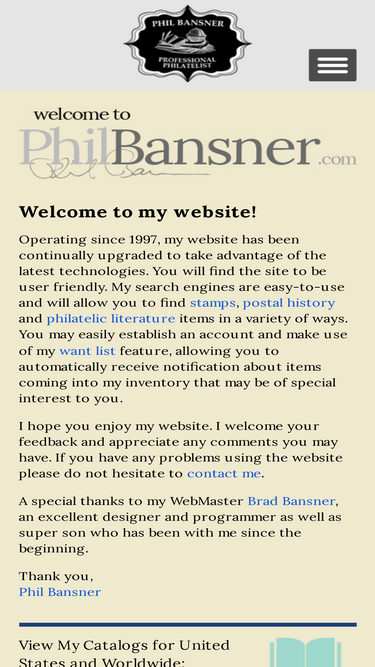 phil bansner is a professional philatelist buying and selling postal history, stamps and philatelic literature.
