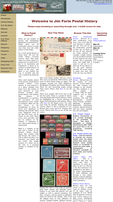 postalhistory.com is resource for collectors of united states and worldwide covers and postal history. the site offers over 200.000 covers for sale. the focus is on u.s. town cancels, u.s. 20th century postal history, u.s. and worldwide military, worldwide 20th century and u.s. and worldwide international airmail. reference material includes market and bibliographic data, an on-line copy of a price guide to u.s. a.p.o. cancels of the second world war and an online database of every u.s. post office ever in existence with the dates of operation.