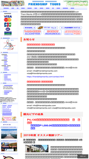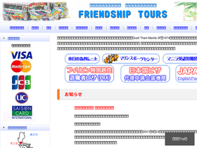 私共フレンドシップツアーは、フィリピンのマニラ首都圏マカティ市にオフィスを構える旅行代理店です。誠実をモットーに皆様の安全と快適 な旅のお手伝いをさせて頂いております。フィリピンにおけるホテル、リゾート、ゴルフ、ダイビング、オプショ ナルツアーなど旅行のことならフィリピン専門旅行代理店のフレンドシップツアー に是非お任せください。