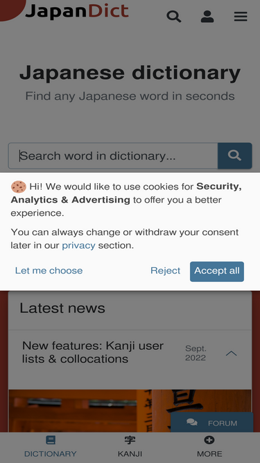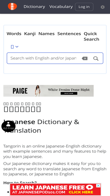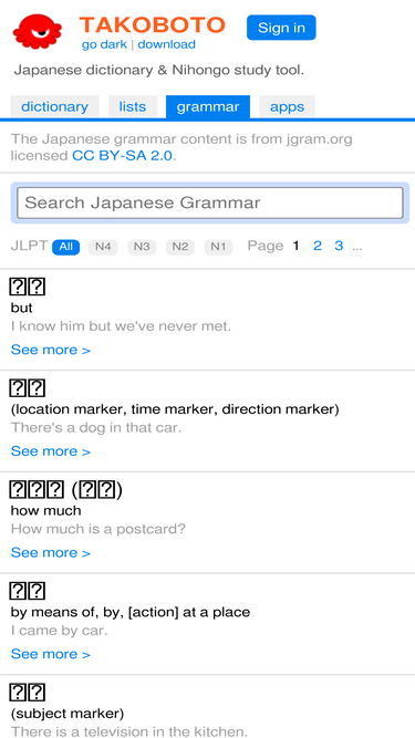 intelligent online japanese dictionary with custom vocabulary lists, kanji glossary, and example sentences. translate from english to japanese