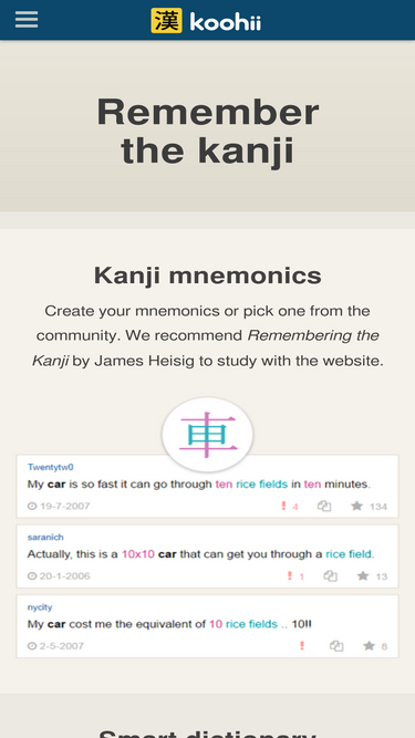 Kanshudo Challenge is a fantastic new way to learn Japanese kanji and words. A Challenge consists of a series of games and tests which work together to ensure you learn deeply. Challenges are fun, quick, and a highly effective way to study.