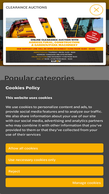 KAPOW er markedspladsen for brugte maskiner og udstyr til landbrug, transport og industri. Sælg og køb udstyr på vores online auktioner