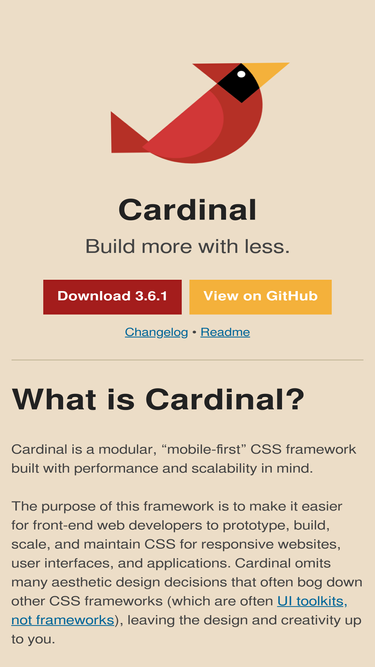 cardinal is a modular, “mobile-first” css framework for front-end web developers. it’s built with performance and scalability in mind.