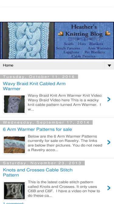 I offer beginner and advanced knitting patterns. I have patterns for blankets,arm warmers,scarfs,tote bags. There are also charities listed.