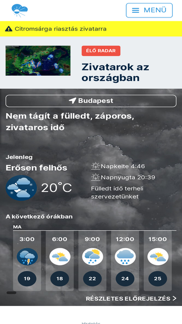 15 napos időjárás előrejelzés valamennyi hazai városra, valamint időkép, hosszútávú előrejelzés és időjárási veszélyjelzés – esőtánc.hu!