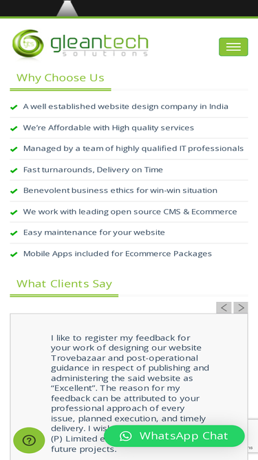 gleantech solutions is a professionally managed web designing and ecommerce website design development company chennai, india. it is a pioneer institution that caters to both domestic and international client.