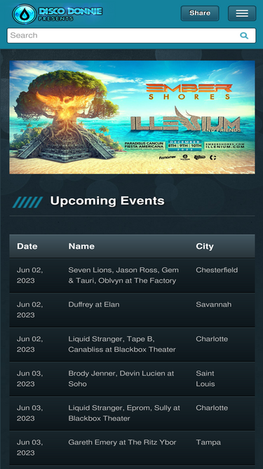 Your source for all Disco Presents events, concerts, and festivals throughout the United States, Canada, Mexico, and South America.