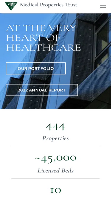 Take a closer look at a worldwide map showing locations of hospitals that are part of the Medical Properties Trust (MPT) portfolio and view profiles of select properties, sorted by country or region, facility type and operator. Working with esteemed leaders in the healthcare industry, MPT facilities serve patients in the U.S. and Europe.