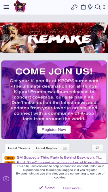 A long-form K-pop community for real discussion, artist profiles, card trading, and fandom beyond the infinite feed.