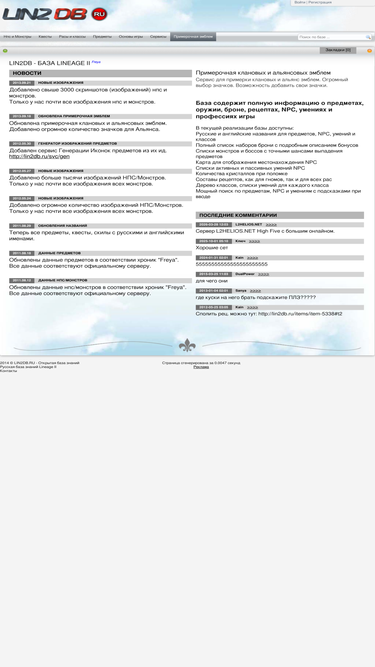 русская база знаний по игре lineage 2, прохождения и описания всех квестов; описания рас и классов, таблица умений и не только, различные гайды и руководства к игре.