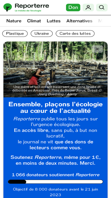 Reporterre est un média indépendant qui publie chaque jour des articles, enquêtes et reportages sur l'écologie. En accès libre, sans publicité, à but non lucratif, Reporterre est financé par les dons de ses lectrices et lecteurs.