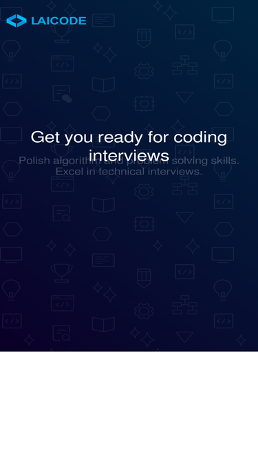 87%Preparing for technical interviews can be tedious and exhausting. LaiCode brings the best coding experience and the problems/challenges relevant to your specific skill levels and career goals, so you can improve and be ready.